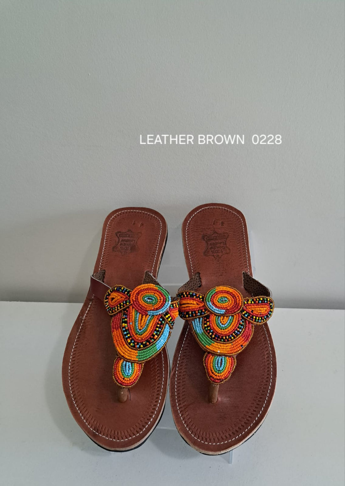 Handcrafted leather flip flops featuring vibrant floral designs that blend artisanal quality with everyday comfort....